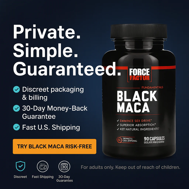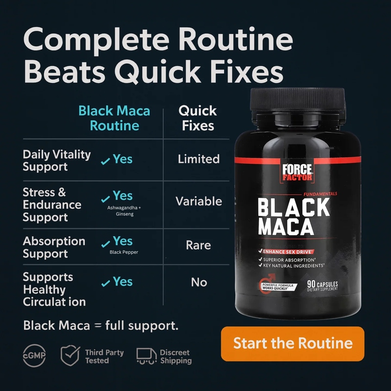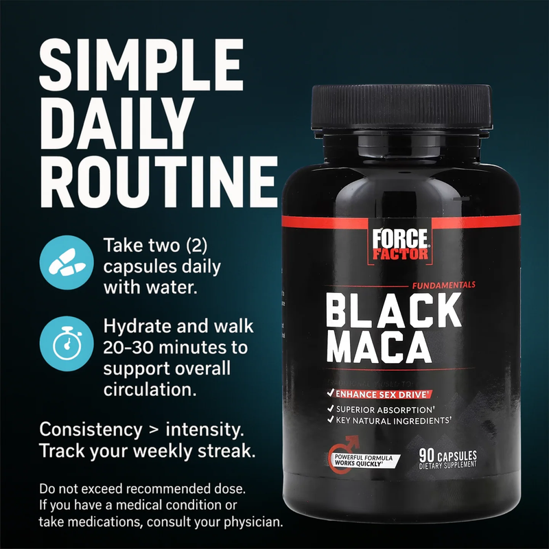 ED Support from Within: 950 mg Black Maca + adaptogens to back libido, stamina & blood-flow